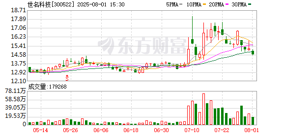 尽管强调“此事不会对公司正常生产经营造成重大不利影响”,但7月29日,世名科技股价盘中一度跌超10%。截至当日收盘,股价报15.45元/股,跌7.87%。